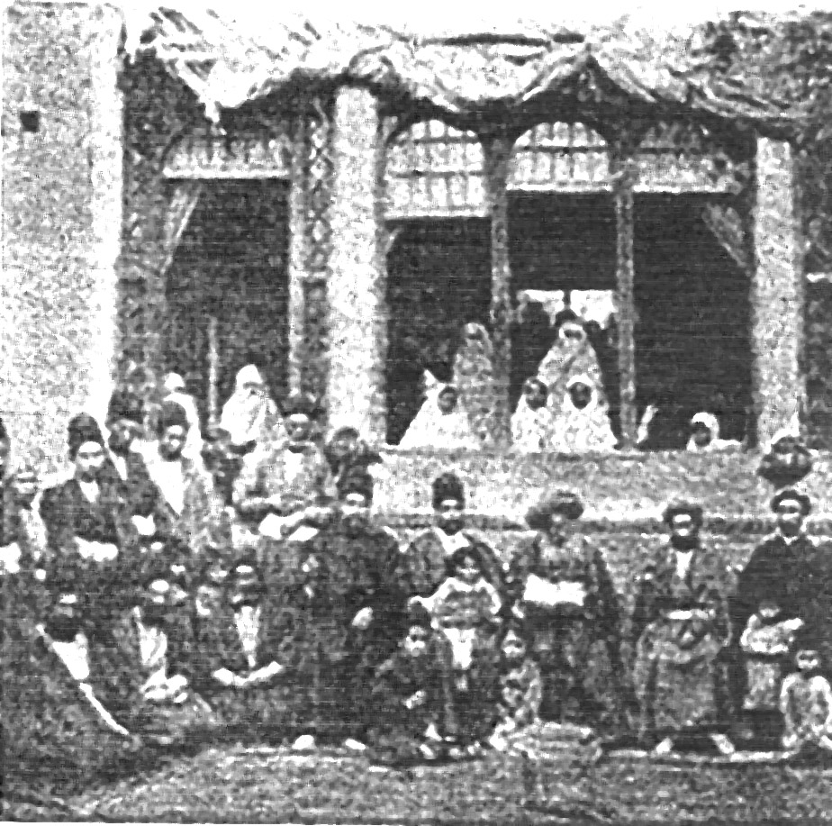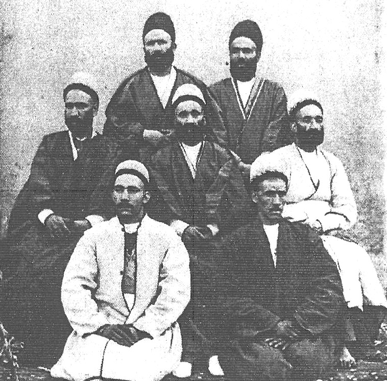 یک گروه از مردان یهودی اصفهان، با عبا، کمرچین و قبا و کلاه نمدی. به نظر می‌رسد