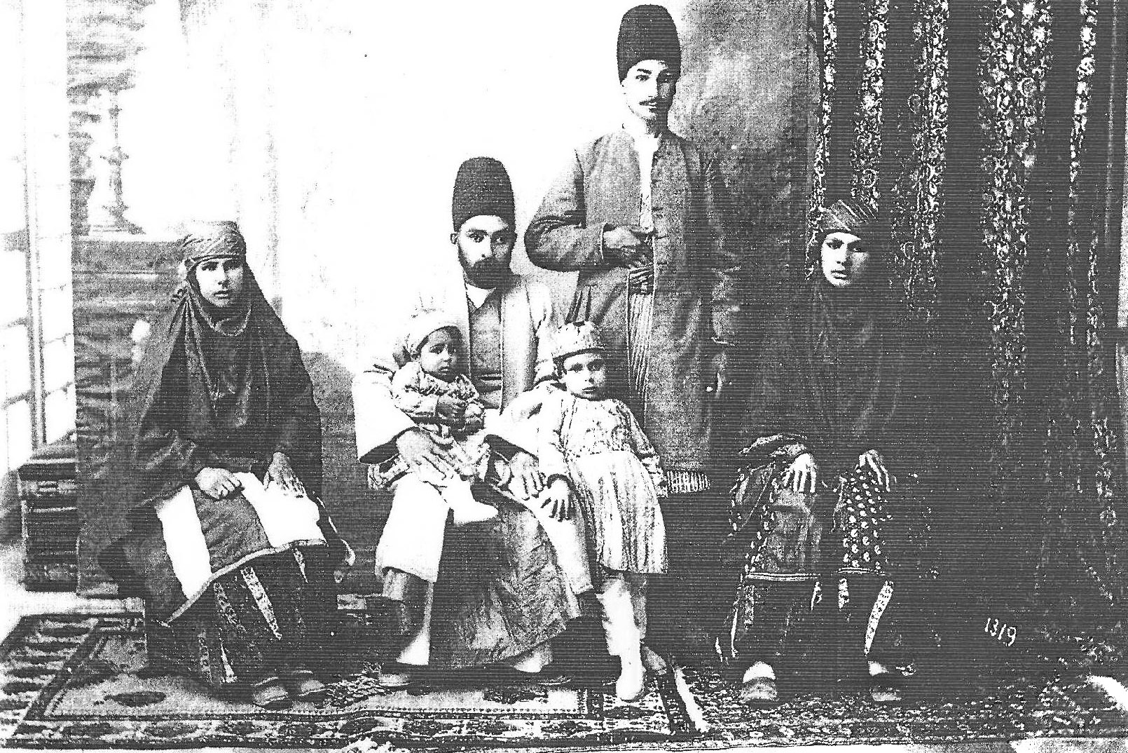 یک خانواده یهودی؛ یکی از مردان کلاهی مخروطی از پوست برّه، دیگری کلاه کوتاهی بر سر دارد.