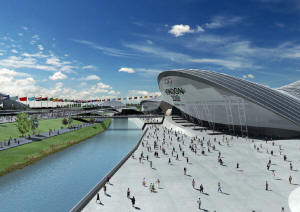 ساخت مرکز بازی‌های آبی المپیک 2012 لندن، بدون تردید دیگر ابتکار لندنی هاست. این مجموعه که توسط زاها حدید Zaha Hadid ، معمار پرآوازه ی عرب تبار به شکل یک سفره ماهی عظیم طراحی ‌شده، شامل دو استخر 50 متری به علاوه یک استخر مخصوص شیرجه است. در ساخت این ساختمان پیچیده، دو بال متحرک با 3360 تن میله فولادی به کار رفته است. بال‌های متحرک مطابق شرایط آب‌ و‌هوایی قابلیت باز و بسته شدن خواهند داشت. در این مرکز که علاوه بر مسابقات شنای المپیک و شیرجه، محل برگزارى بازی‌های نهایی واترپلو نیز خواهد بود، 17500 صندلی در جایگاه تماشاگران در نظر گرفته شده است. پس از اتمام بازی ها تعداد این صندلی‌ها به 2500 عدد کاهش پیدا خواهد کرد و این فضا به گردهمایی‌های عمومی اختصاص خواهد یافت و استخرها برای رقابت‌های ملی و منطقه‌ای مورد استفاده قرار خواهند گرفت.