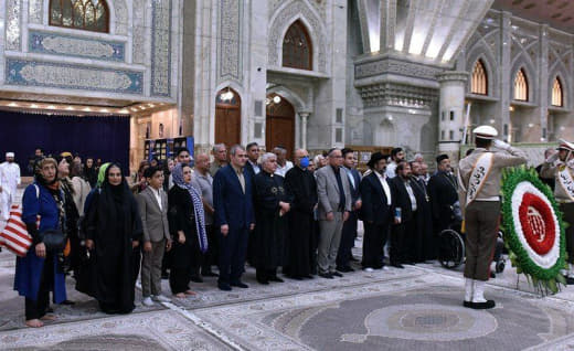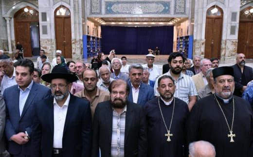 خمینی، نمایندگان جامعه کلیمیان در مراسم نثار تاج گل و تجدید میثاق با آرمانهای