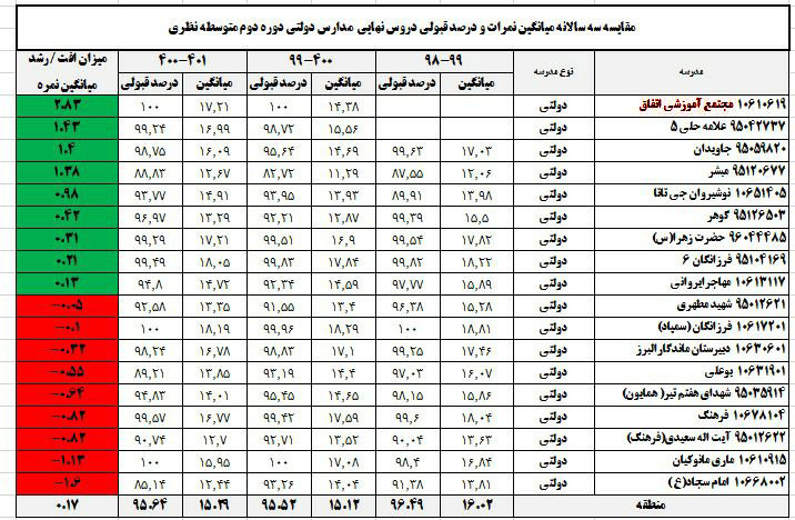 منطقه ۶ آموزش و پرورش، از نظر درصد قبولی دروس نهایی، رتبه نخست را به خود