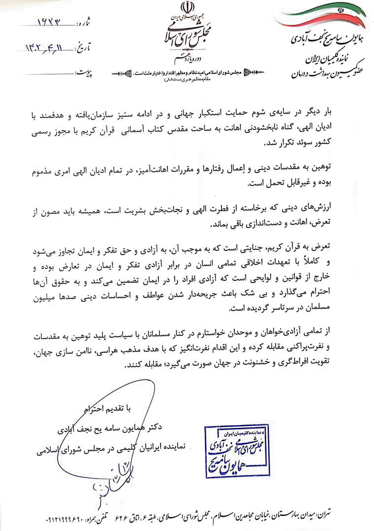 همایون سامهیح، نماینده کلیمیان در مجلس شورای اسلامی، در این مراسم با تبریک