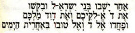 «پس از آن، بني‌‌اسرائيل بازگشته و حد-اوند خالق خود را طلب خواهند كرد و (ماشيح فرزند) داود حاكم خود را (خواهند خواست) و آنها از حد-اوند خوف داشته و به خوبي‌‌هاي او اميدوار خواهند بود»
