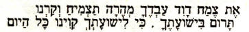 «نهال نورسته بنده‌‌ات داويد (حضرت داود) را به زودي شكوفا كن و با نجات خود، قدرت وي را افراشته گردان، زيرا ما هر روز به نجات تو اميد داريم»